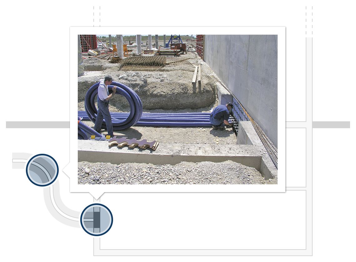 För anslutning av Hateflex-spiralslang 14150 till kärnborrningar respektive foderrör. Skarvmuffarna ansluts till slangen med hjälp av en manschett. Tätningen mot väggen utförs med de två medföljande …